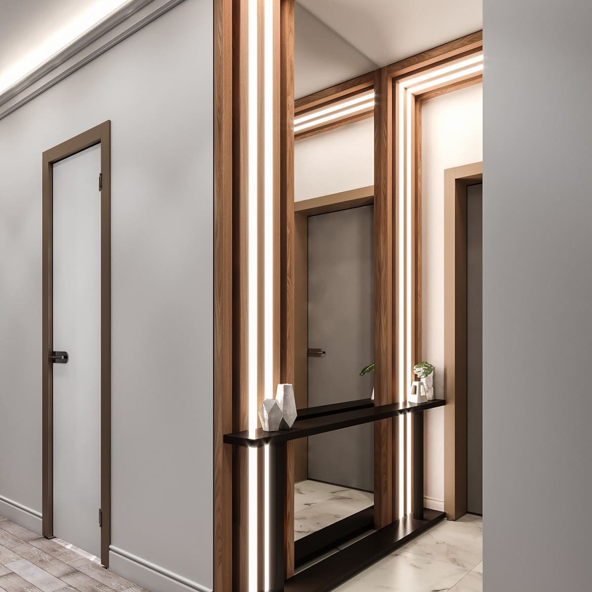 Монтаж настенных декоративных гипсокартонных конструкций всевозможных ниш с подсветкой